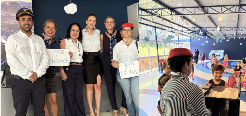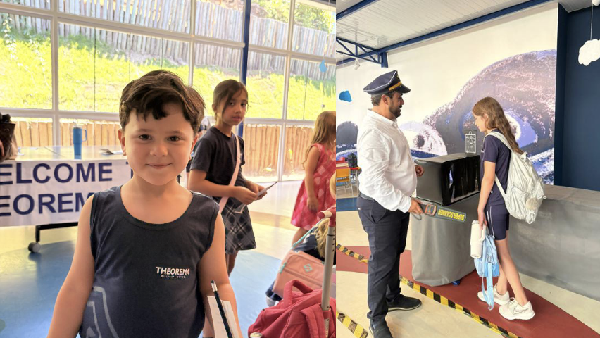 Em fevereiro, o primeiro dia de aula ganhou um formato criativo: a escola se transformou na “Theorema City”, um aeroporto simbólico onde os alunos “embarcaram” na jornada da aprendizagem. A proposta marcou o início das atividades de forma lúdica e envolvente, reforçando a ideia de que o processo educacional também pode ser vivido como descoberta e exploração do conhecimento.